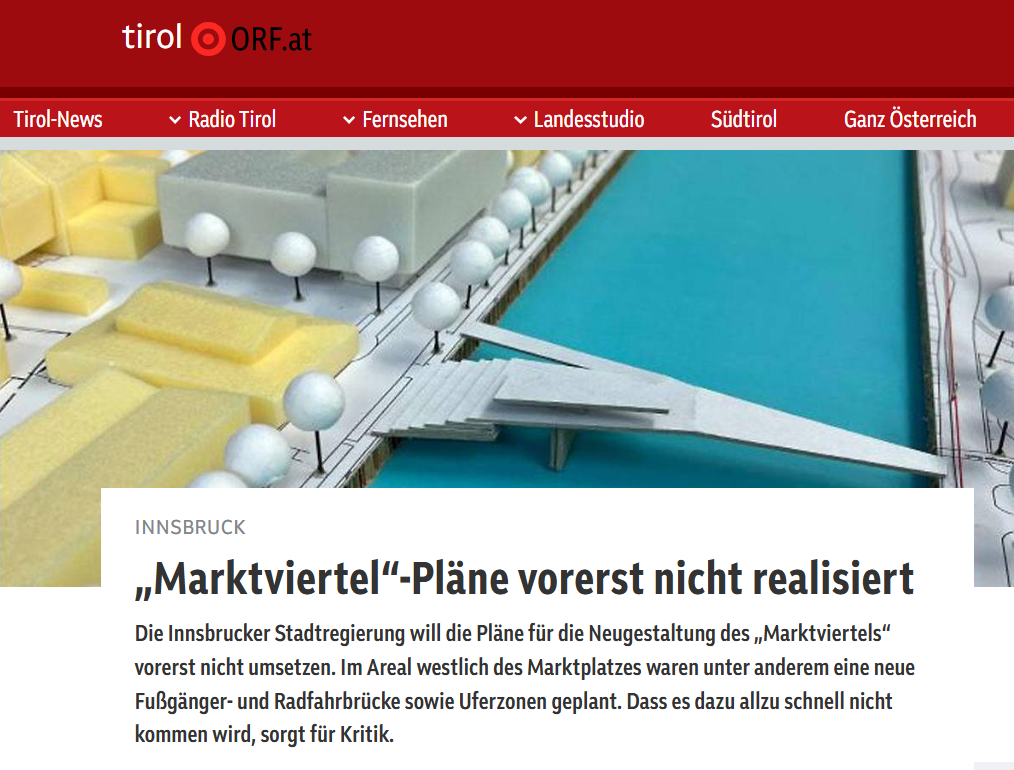 Die Innsbrucker Stadtregierung sagt die Neugestaltung des Marktviertels faktisch ab. Was noch vor wenigen Jahren als zukunftsweisendes Projekt für das Areal westlich des Marktplatzes – inklusive neuer Fuß- und Radbrücke über den Inn sowie attraktiver Uferzone – präsentiert wurde, sei nun „völlig unrealistisch“ und nicht finanzierbar. Diese Feststellung kommt aus dem Büro von Bürgermeister Johannes Anzengruber.